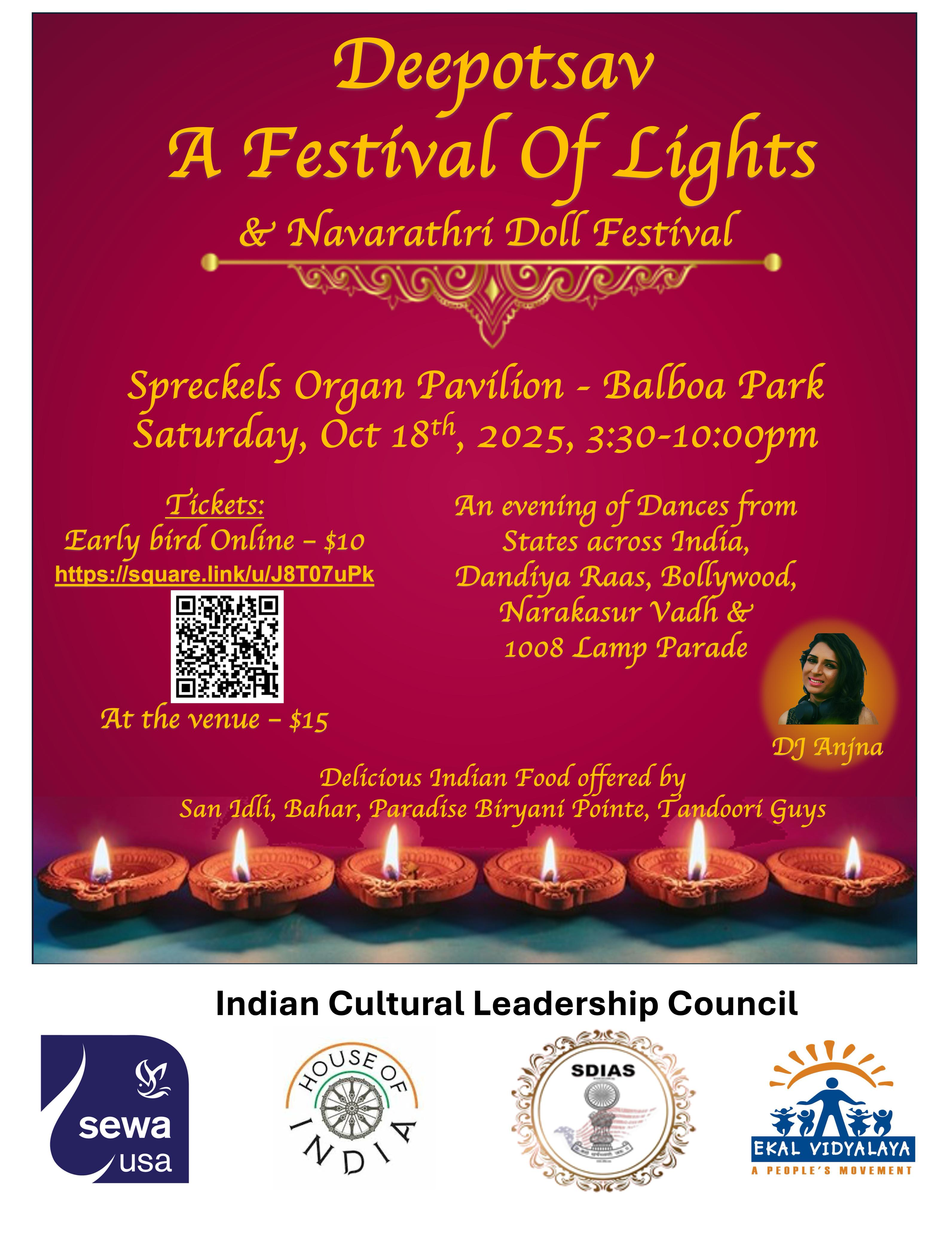 We celebrate Indian culture through an annual festival of lights celebration at Balboa Park and a cultural program of dance and music at the Poway Center for Performing Arts.